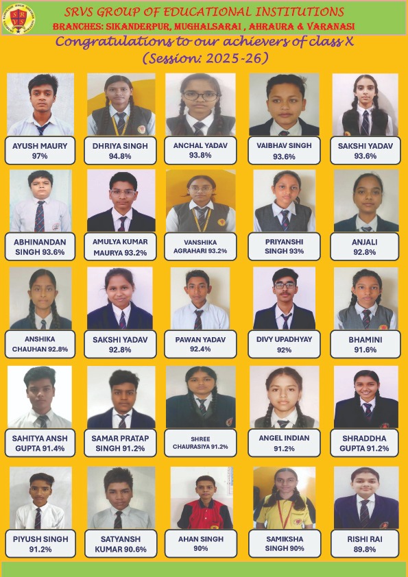 SRVS स्कूल सिकंदरपुर का यह रिजल्ट केवल आंकड़ों की कहानी नहीं, बल्कि मेहनत, समर्पण और सपनों की जीत का प्रतीक है। 24 छात्रों का 90% के पार जाना यह साबित करता है कि सही दिशा में किया गया प्रयास हमेशा सफलता की ऊंचाइयों तक पहुंचाता है।