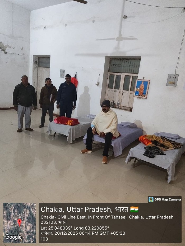 अलाव की गर्मी में, रैन बसेरे की रजाई में और चाय के प्याले की भाप में। जिसके क्रम में शनिवार को चकिया तहसीलदार देवेन्द्र जी रैन बसेरे का निरीक्षण करने पहुॅच ही गये। और वहाँ पर मौके का जायजा लिया और आवश्यक दिशा निर्देश भी दिया।