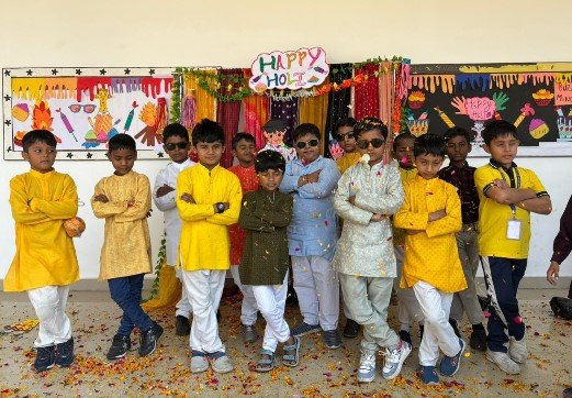 विद्यार्थियों ने एक-दूसरे पर गुलाब और गेंदा की पंखुड़ियाँ डालकर होली खेली। हर चेहरे पर मुस्कान, हर आँख में चमक, और हर दिल में अपनापन।